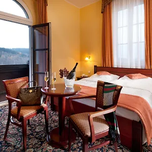 Das prunkvolle 4-Sterne Chateau Monty Spa Resort, auch unter dem Namen Chateau Monty Spa Resort Mariánské Lázně Bekannt, thront majestätisch in einer ruhigen und malerischen Parklandschaft oberhalb von Marienbad. Das Hotel verfügt über eine breite Palette von Annehmlichkeiten, einschließlich kostenloser Nutzung des Pools, des Spa- und Fitnessbereichs und einer Auswahl an gastronomischen Einrichtungen. Der Hotelkomplex gliedert sich in drei originale Bauwerke, die durch Terrassen, einen Restaurantgarten und Tennisplätze ergänzt werden. Die Gäste des Hotels können den Komfort eines kostenlosen Bahnhofsabholungsdienstes sowie kostenloses WLAN in den öffentlichen Bereichen genießen.